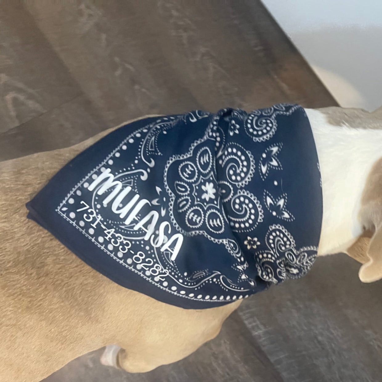 Personalize it with your dogs name & your phone number. Perfect for your fur baby! These are soft, washable cotton bandannas. Perfect for inside the house when they need a break from those bulky collars. Or wear them out with the collars to add style! Have them wear it any way you want! Tie it anyway you want for the perfect fit!