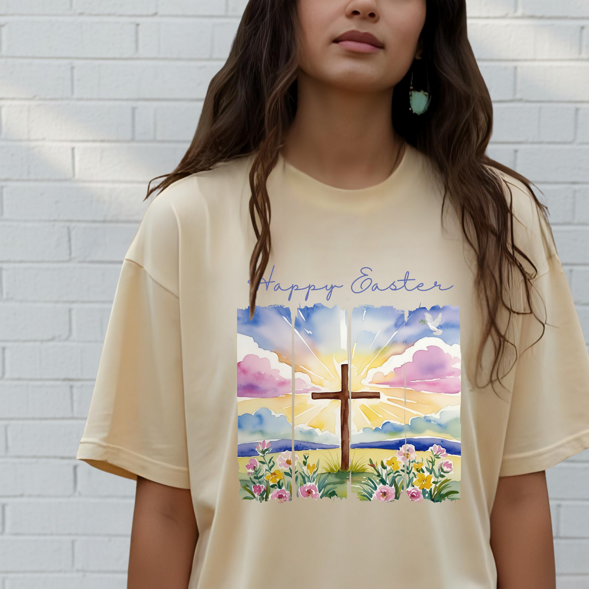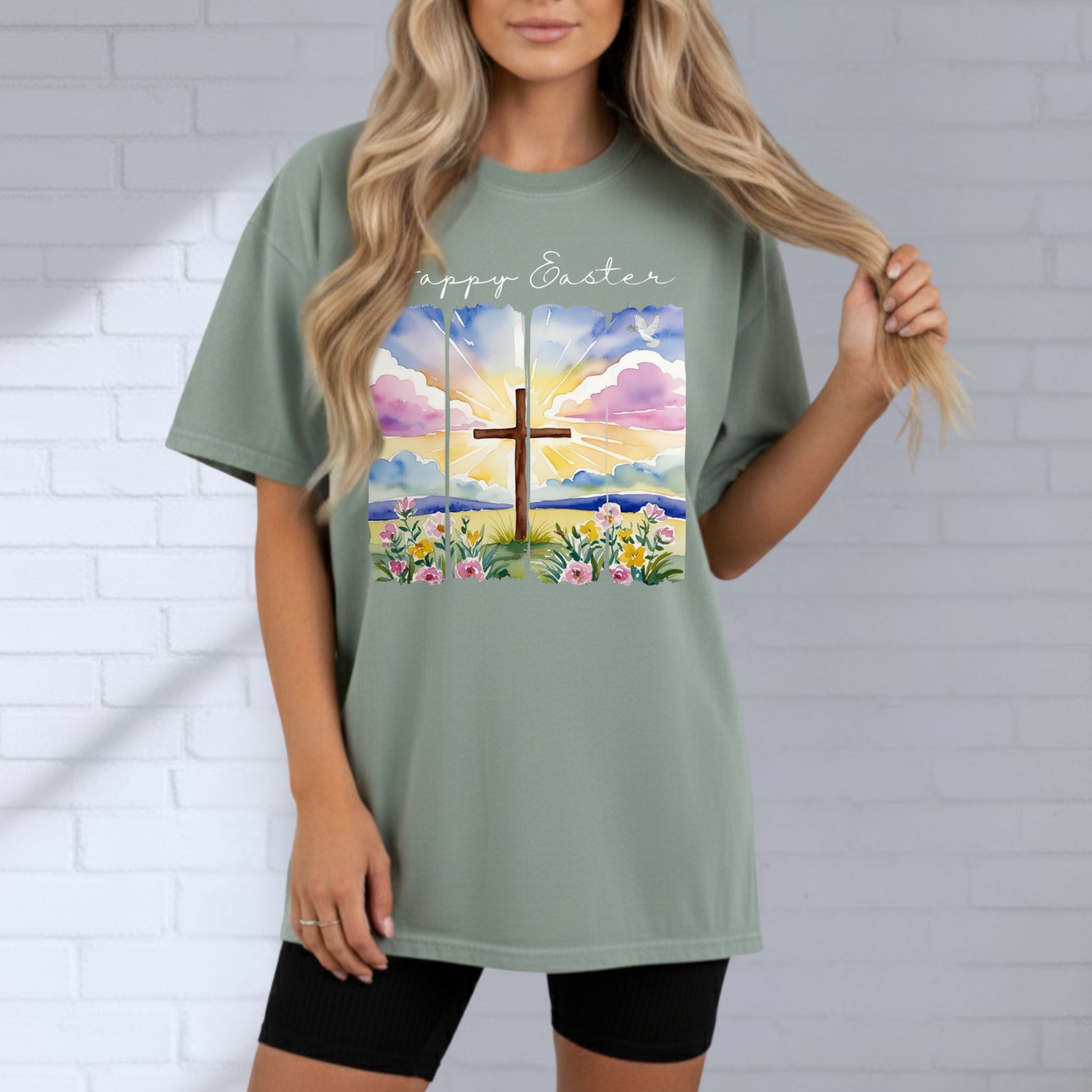 Celebrate your faith and the joy of Easter with this beautifully customized Comfort Colors t-shirt. The vibrant design features a stunning cross amidst a blossoming landscape, bringing warmth and positivity to your wardrobe. Perfect for casual outings, family gatherings, or holiday celebrations like Easter, this t-shirt offers a relaxed fit that allows for soft comfortable all-day wear. Ideal for anyone looking to share their Easter spirit, this tee makes a thoughtful gift for friends and family. Wear it at Easter brunch, church services, or during family egg hunts - a versatile piece that adds a meaningful touch to any outfit!